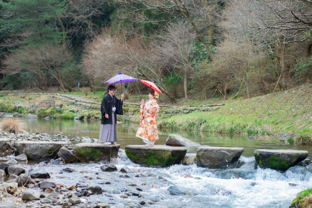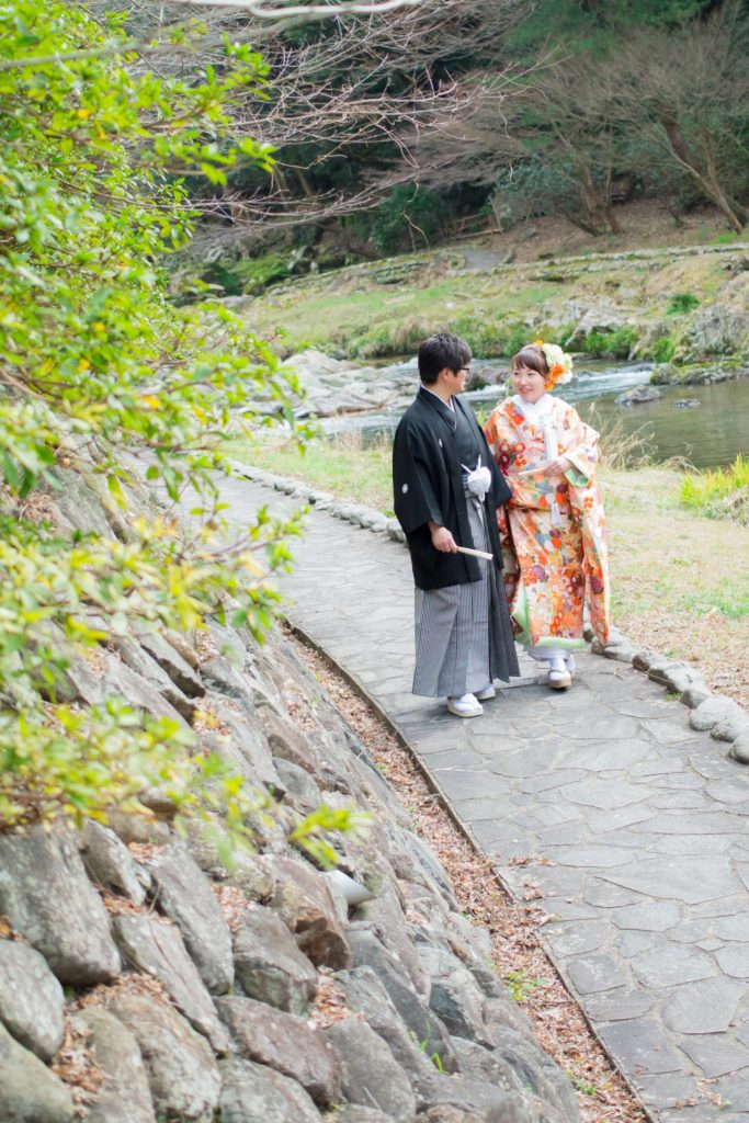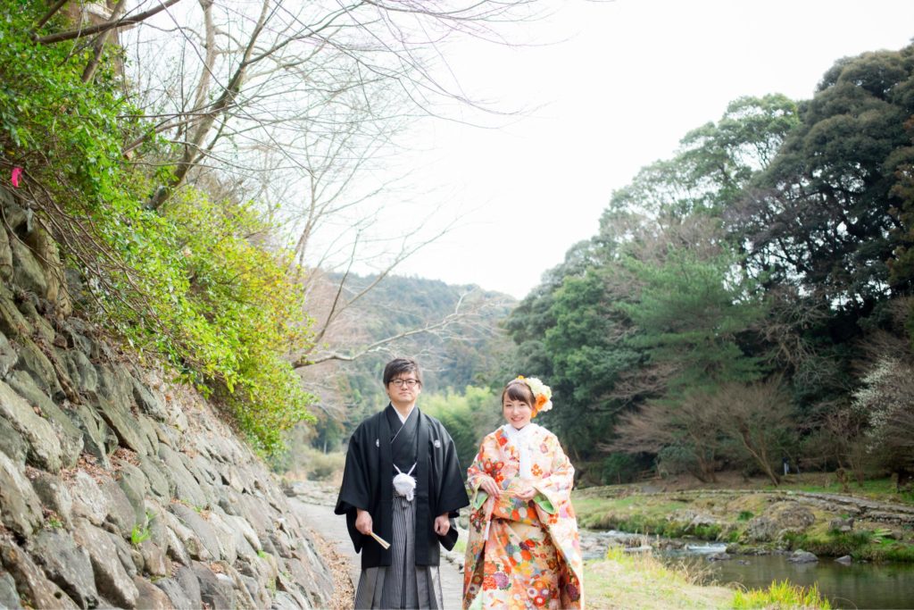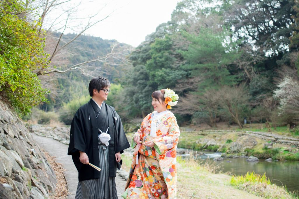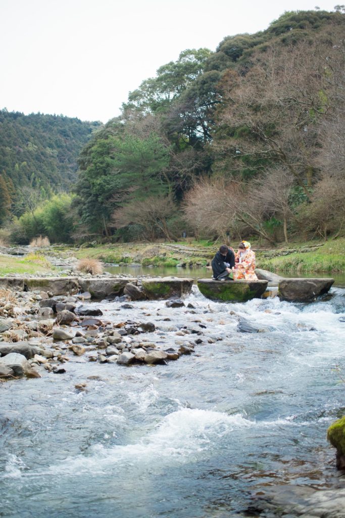 音信川のほとりで|大谷山荘での春の前撮り