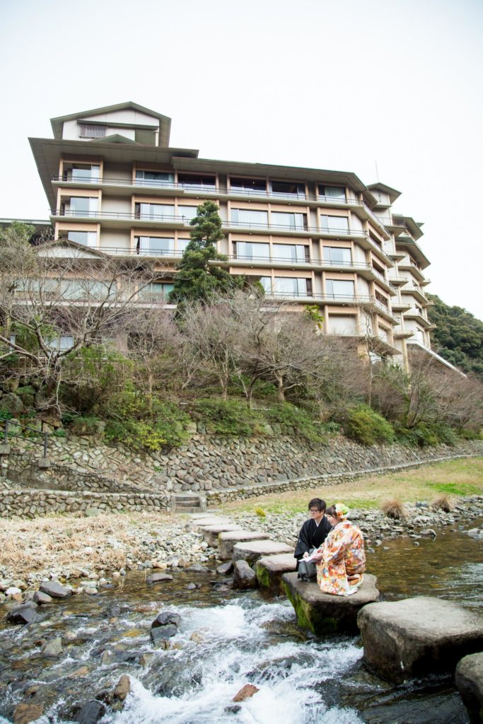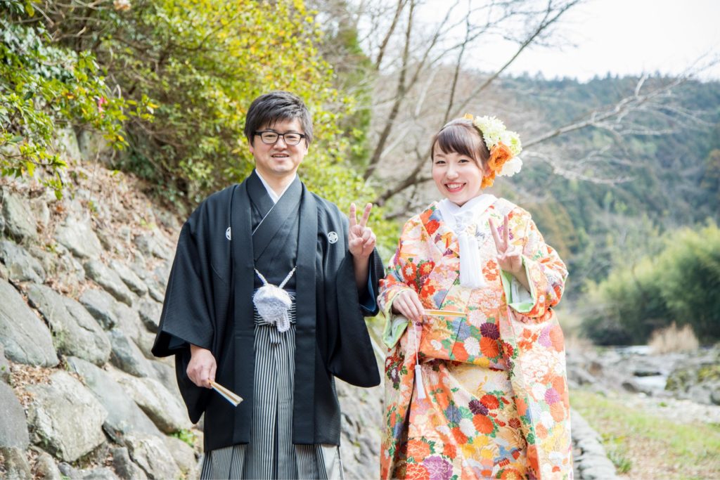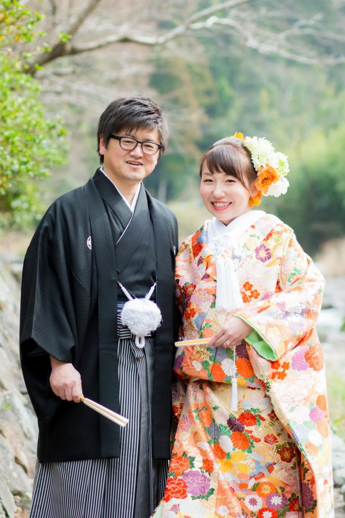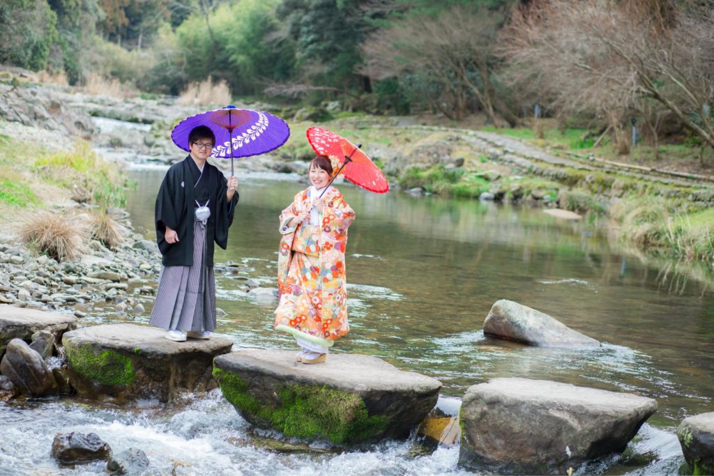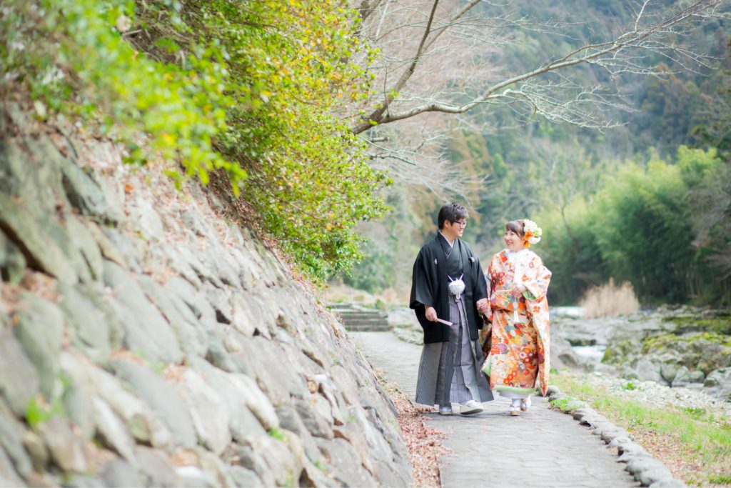 音信川のほとりで|大谷山荘での春の前撮り