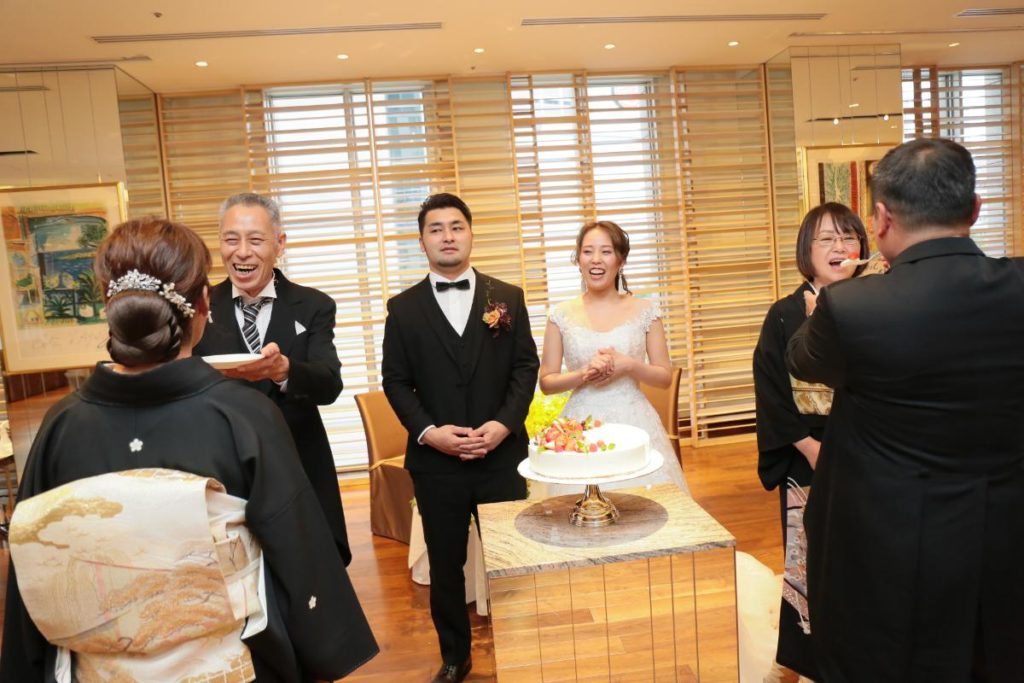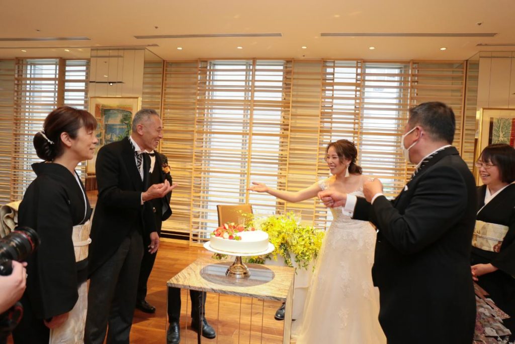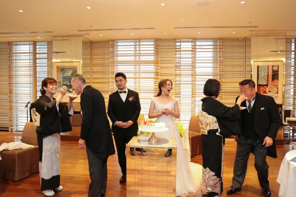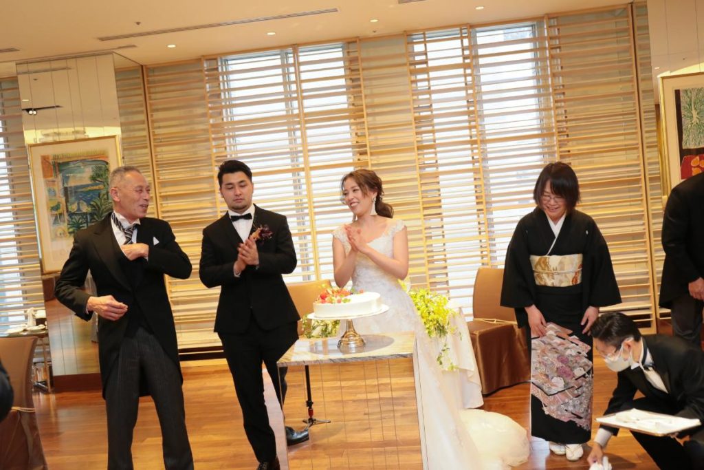 にぎやかなケーキカットからのお手本バイト。