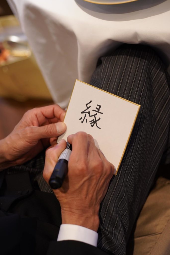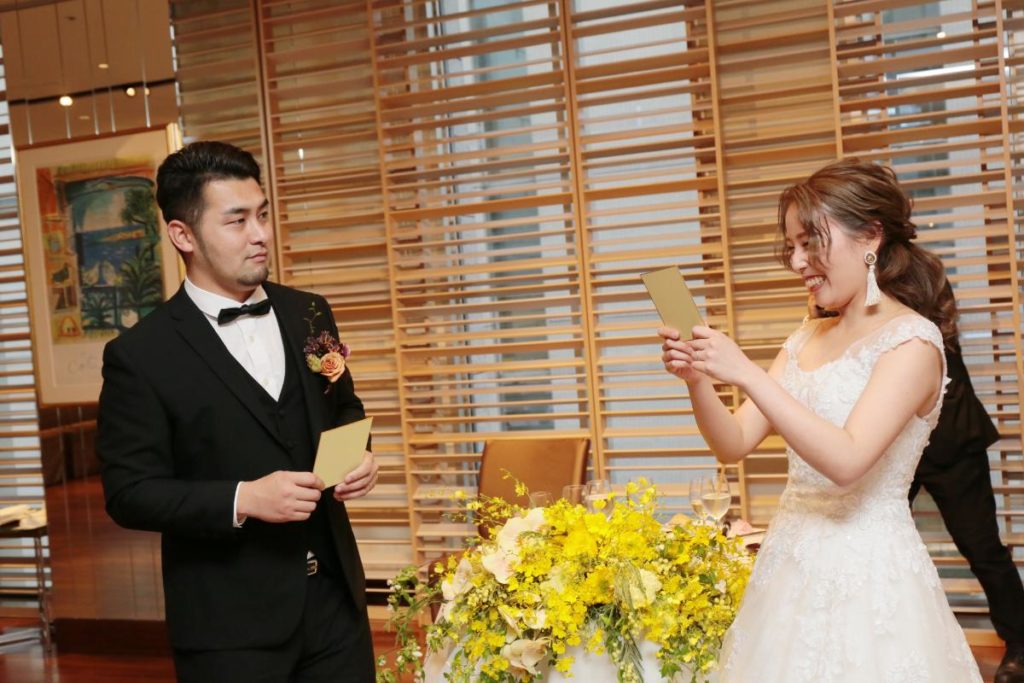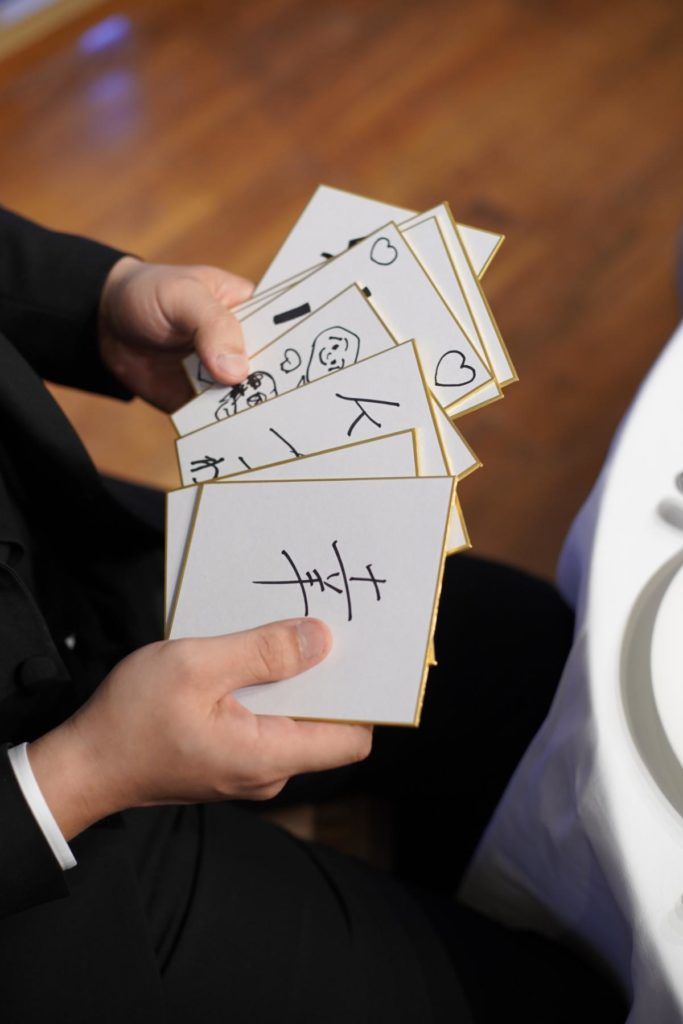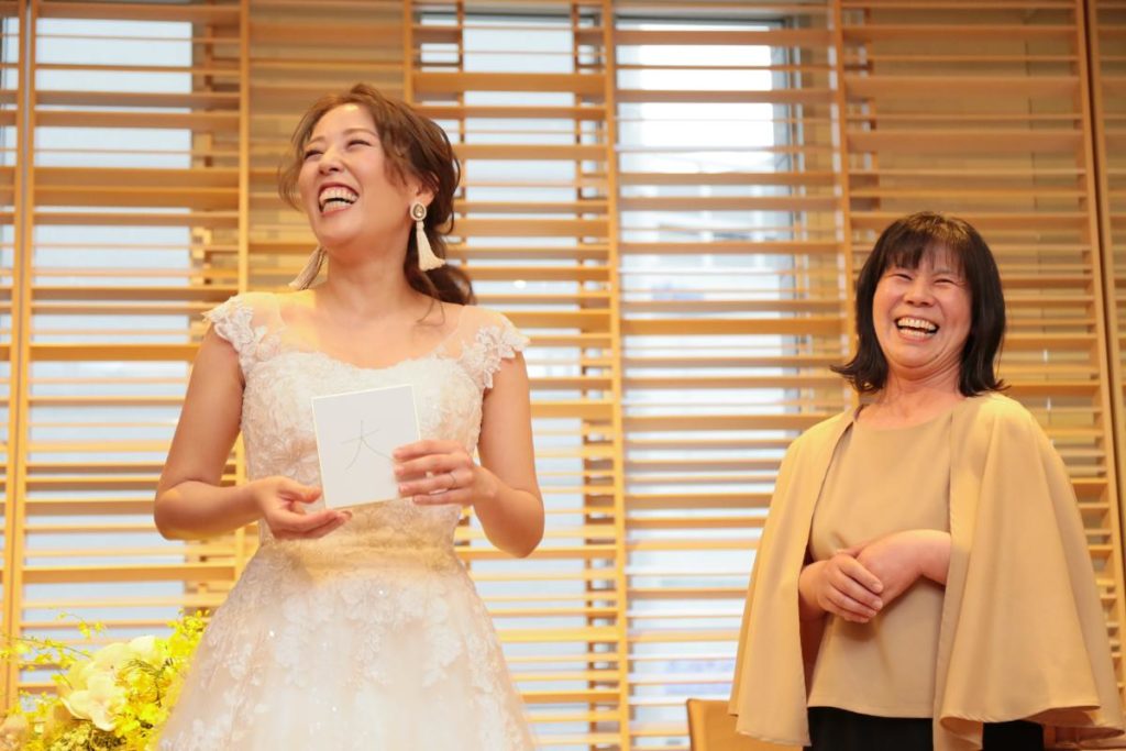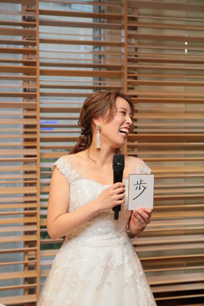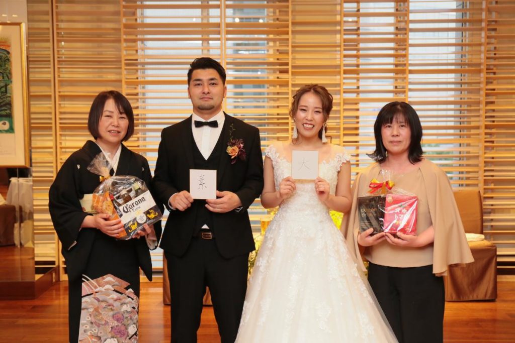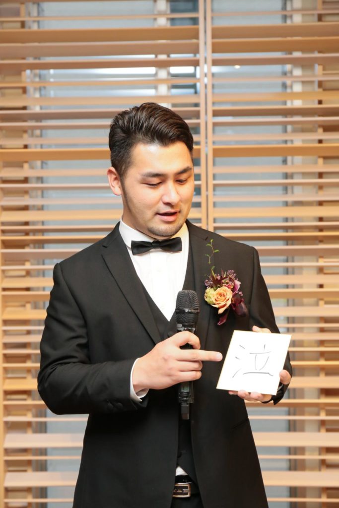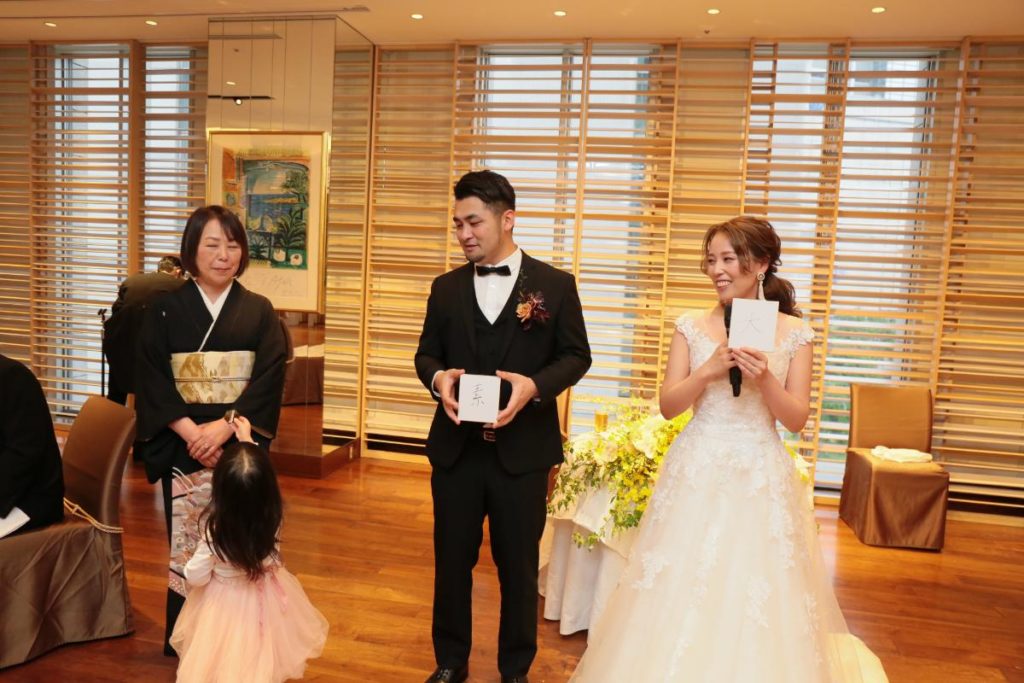 新郎新婦同士も、「これからよろしく」のメッセージを込めた「一文字」を。