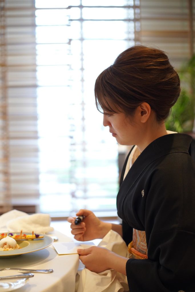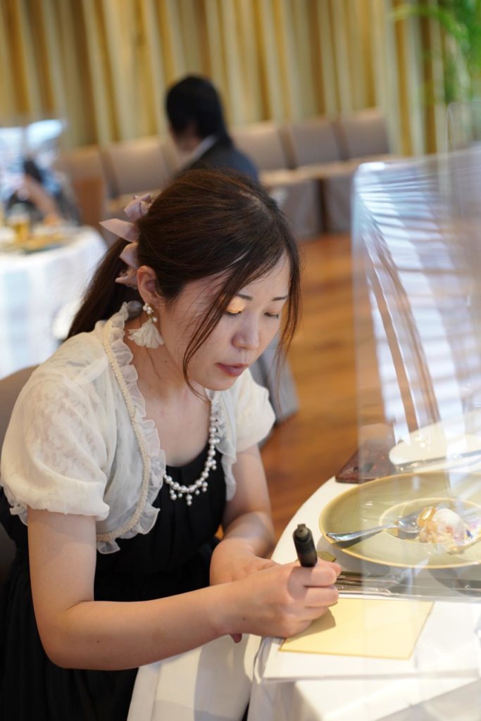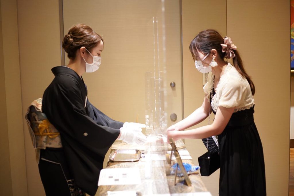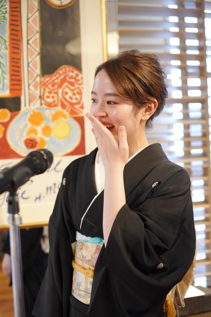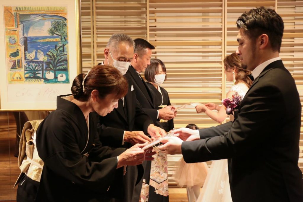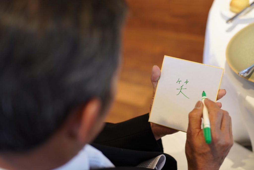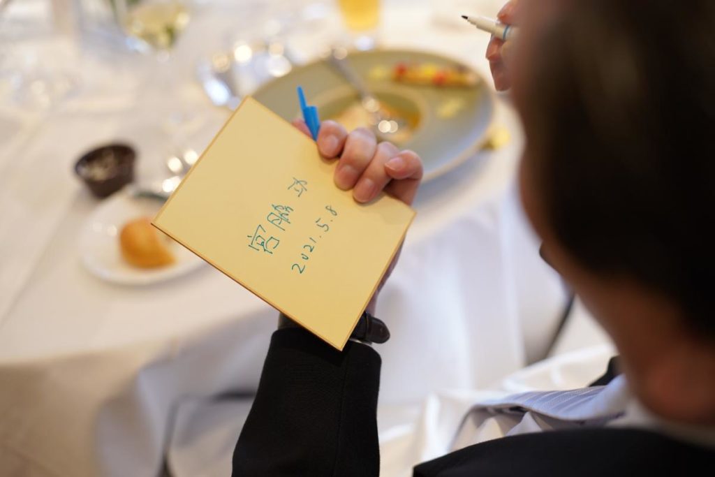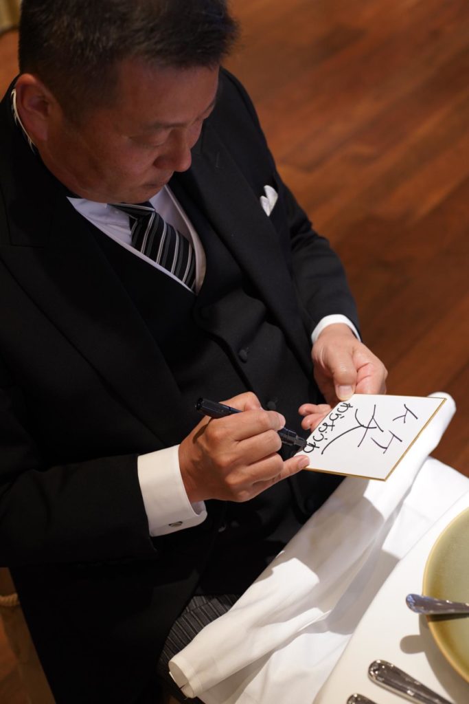 新郎新婦同士も、「これからよろしく」のメッセージを込めた「一文字」を。