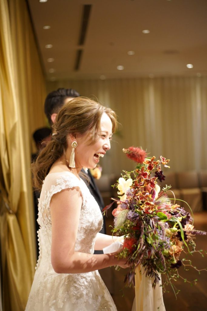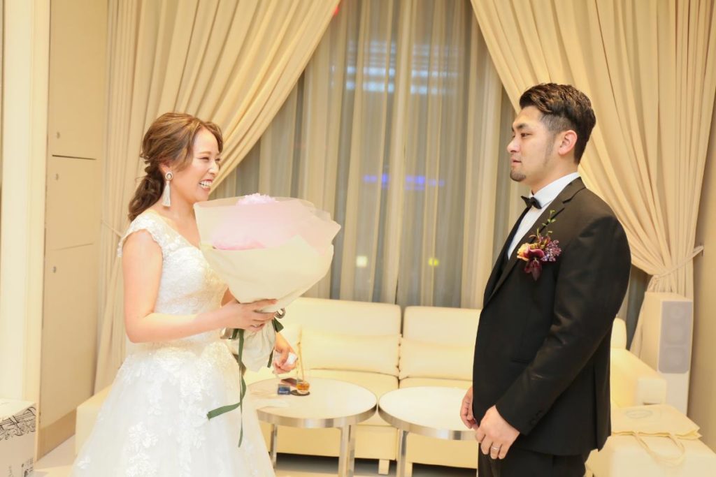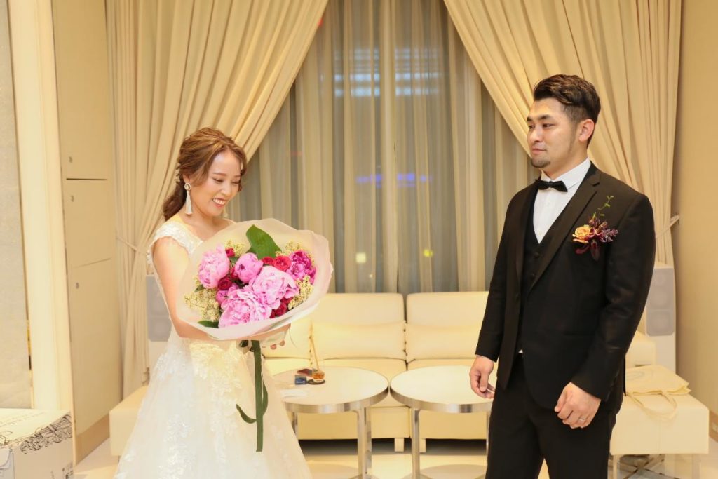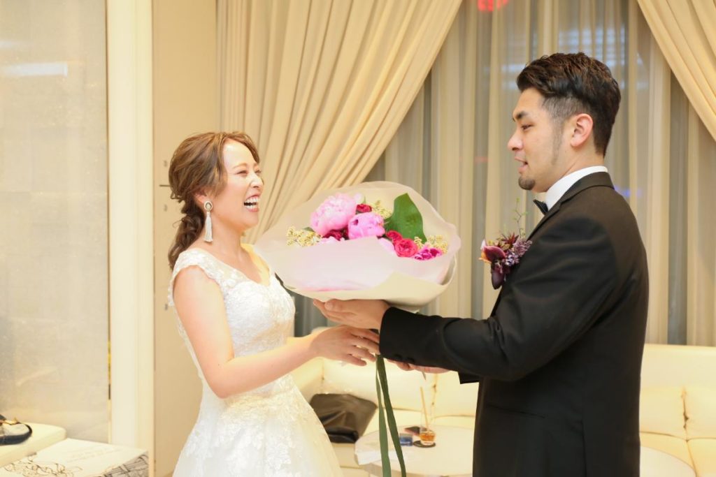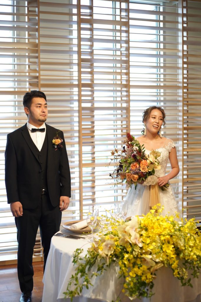 とういう、シャイで優しい彼からのメッセージと花束が新婦を待っていました!