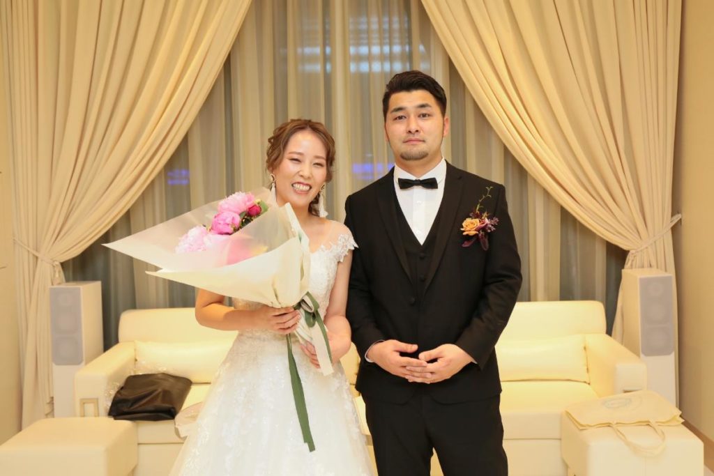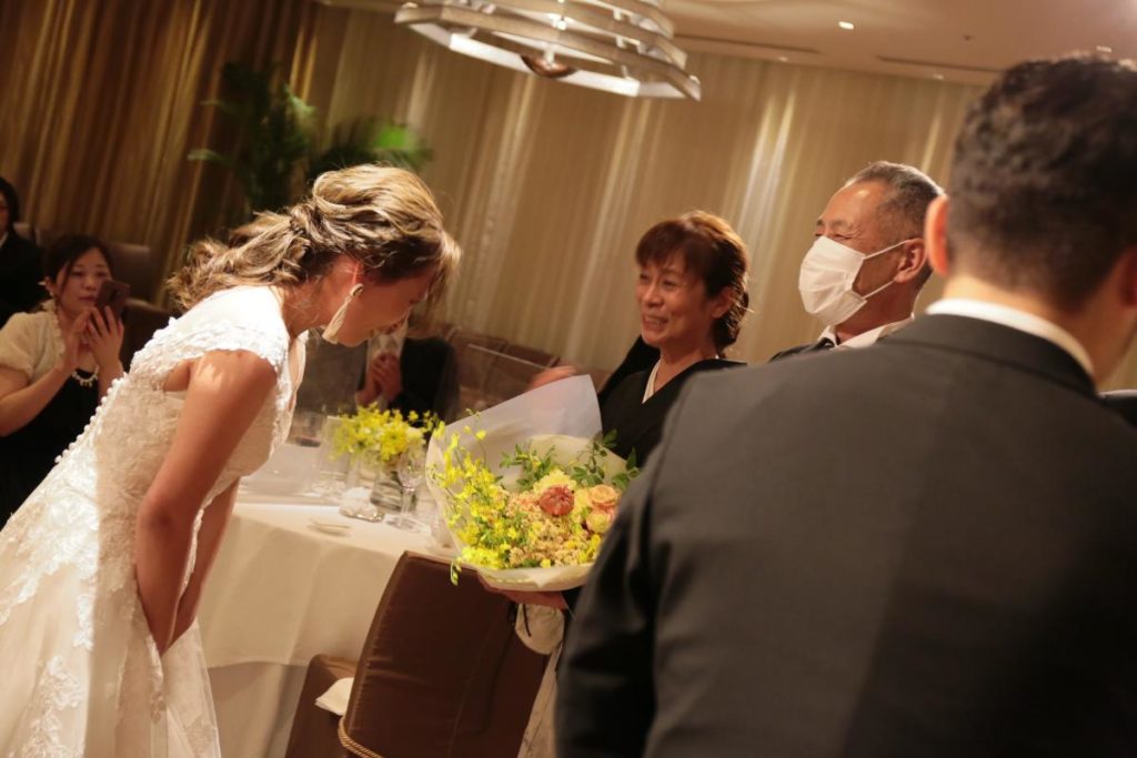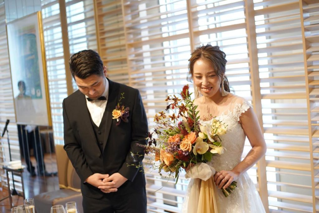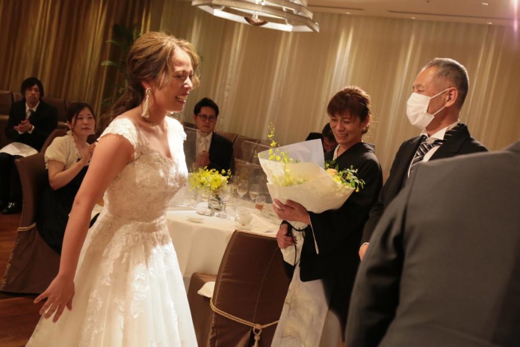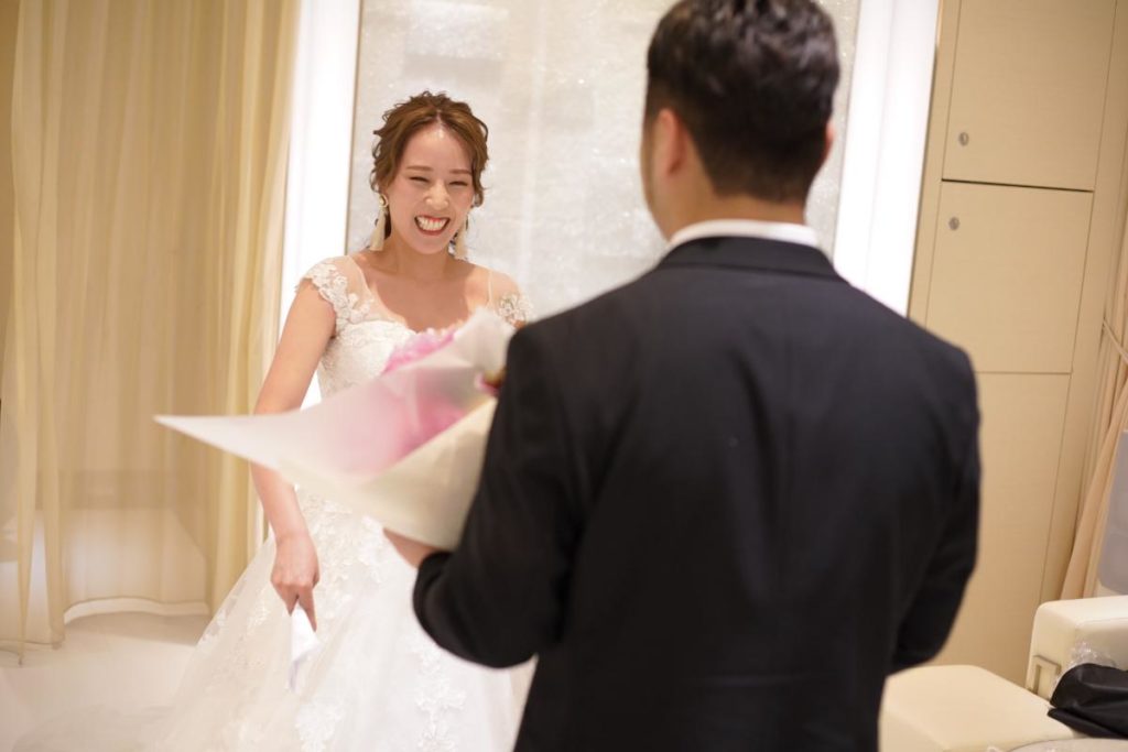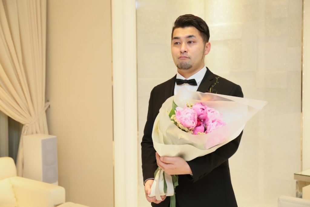 とういう、シャイで優しい彼からのメッセージと花束が新婦を待っていました!
