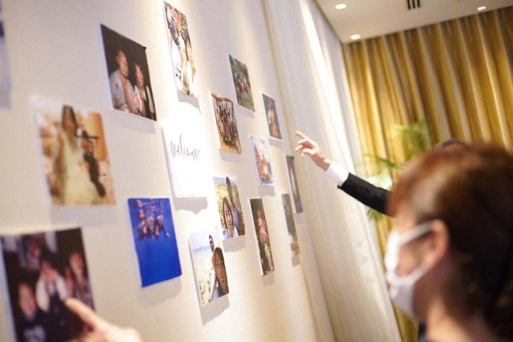 パーティー会場では、ふたりの生い立ちの写真たちが、ゲストを迎え、