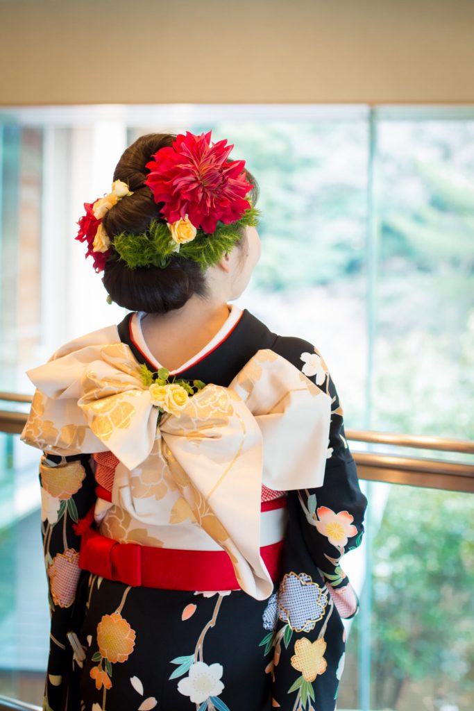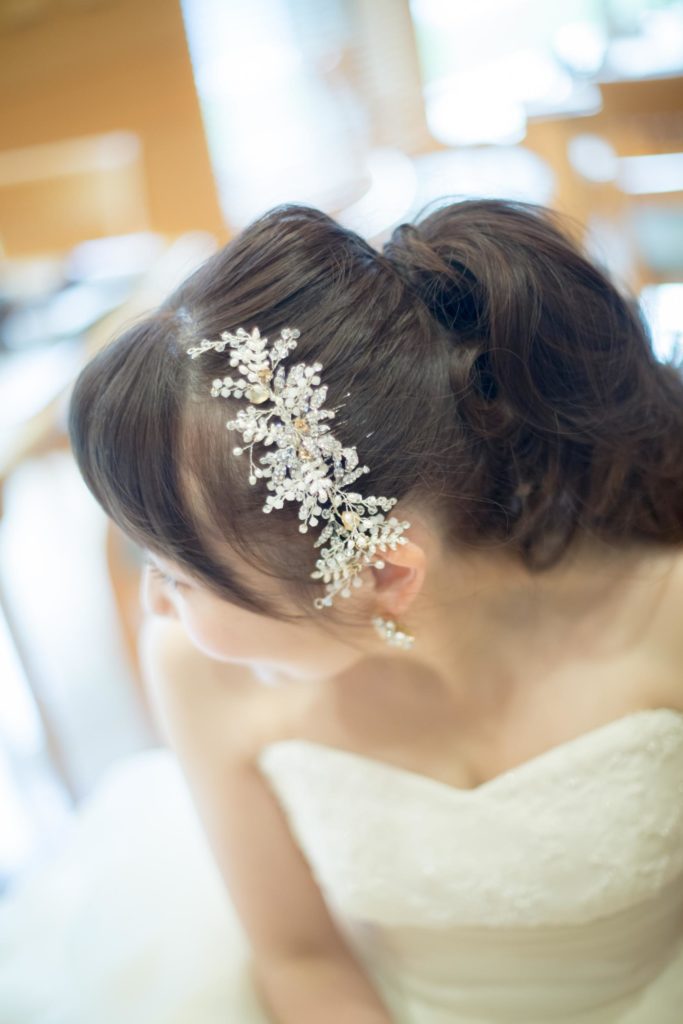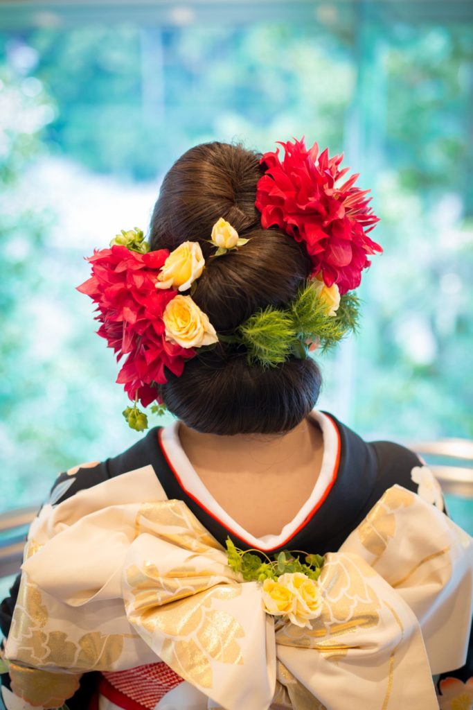 和装の際のヘッド装花も全て前撮り仕様にオーダーされ、
