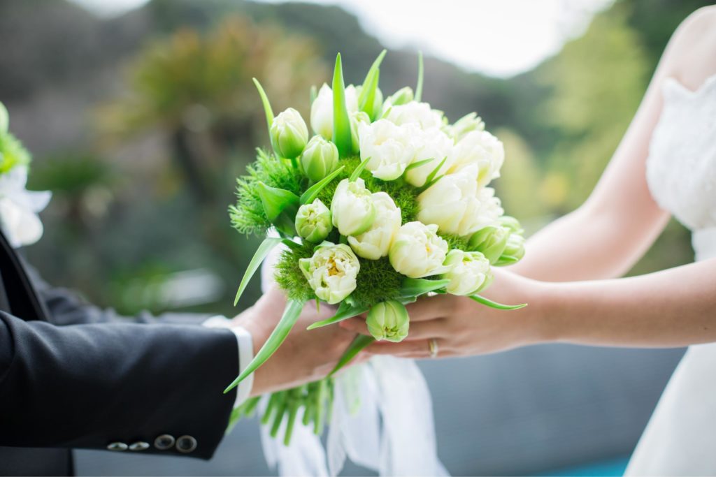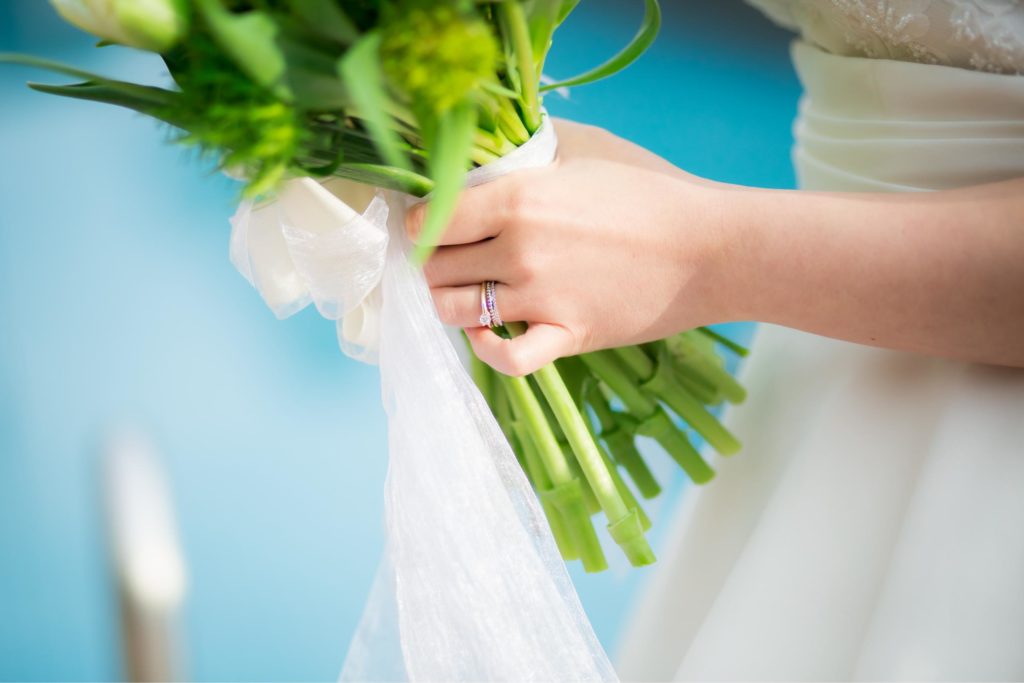 ウエディングドレスのブーケは、